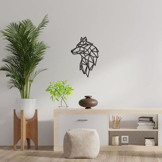 Offrez à votre intérieur une touche sauvage et élégante avec cette décoration murale en métal représentant un loup dans un style contemporain.